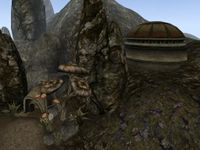 Wäre man dem Pfad nach links befolgt, käme man zu einer Tür, die mit einem 30-Schloss verschlossen und mit einer Falle versehen wurde. Nach dem Betreten der Tür kommt man zu einem größeren Raum, der Korridore in drei verschiedene Richtungen führen lässt. In dem Raum befinden sich zwei Untote, die vom verteidigenden Telvanni beschwört wurden und den Bereich vor Hlaalu verteidigen. Der Korridor, der sich ganz rechts finden lässt, führt zu den Quartieren Milyn Faram's. Die Korridore hinter der Säule mitten im Raum, bilden eine Art Kreis und lassen an zwei abgelegenen Räumen vorbei führen.
