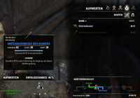 Für die Aufwertung eines Gegenstandes muss mindestens ein qualitätssteigerndes Material der nächsten Stufe vorhanden sein. Möchte man zum Beispiel die Qualität eines erlesenen Stabes auf überlegen steigern, muss mindestens eine Stickerei aufgewendet werden. Für eine Erfolgschance von 100% müssen insgesamt 7 Stickereien angewendet werden.