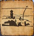 Der Schatz findet sich in der nördlichen Alik'r-Wüste. Reist zum Wegschrein der Aswala-Stallungen und geht nach Südosten, bis ihr auf die Straße stößt. Folgt der Straße nach Nordosten zu Tavas Segen. Betretet die Ortschaft und folgt der Straße weiter nach Norden über die erste Brücke. Kurz darauf wird zu eurer Rechten eine weitere Brücke zu einer Insel mit Turm führen. Lauft weder über die Brücke, noch folgt der Straße weiter nach rechts, sondern geht geradeaus durch zwei steinere Pfeiler durch und schlagt dann den Weg Richtung der am Strand liegende Boote ein. Lasst sie hinter euch und lauft/schwimmt zu der kleinen Sandbank mit steinernem Tor, die flach aus dem Wasser ragt. Auf dieser findet ihr den Schatz.
