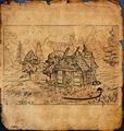 Dieser Schatz findet sich im oberen Kargstein. Reist zum Wegschrein von Himmelsgriff und folgt der Straße im Süden bergab bis zur Kreuzung. Verlasst die Straße, indem ihr durch die Holzzäune am Rand auf der verfallene Haus zugeht. Lauft um das Haus herum. An seiner Ostseite, wo der steinerne Kaminschacht sichtbar ist, findet ihr den Schatz vergraben.