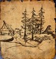 Der Schatz von dieser Schatzkarte liegt in Ostmarsch. Reist zum Wegschrein des Holzfällerlagers. Genau nördlich davon liegt eine Straßengabelung. Geht zu dieser hin und folgt der Straße nach Norden. Die Straße wird einen starken Knick machen und vor euch werdet ihr ein Haus sehen. Lauft aber an dieser Stelle nur bis zur nächsten Laterne am Straßenrand und schlagt dann nach links ein. Dort steht ein großer Tannenbaum und ein Schritt südlich von diesem liegt der Schatz.