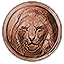 Eine Bronzemünze mit dem Antlitz von Rajhin, dem khajiitischen Gott der List, als Prägung.