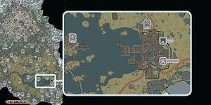 Der östliche Ausgang der Stadt ist mit Holzbrettern verbarrikadiert. Es ist unklar warum dieser Eingang geschlossen wurde, jedoch ist bekannt, dass er den Namen "Totentor" trägt. Dieser Name wurde ihm im Gedenken an die Opfer von Banditenangriffen gegeben[17]. Ein kleiner Turm der Stadtmauer befindet sich hier.