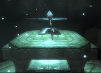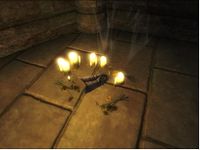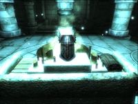 Nachdem er die Krpyta der Kapelle betreten und am Grab von Sankt Kaladas gebetet hatte, fand sich der Held von Kvatch in einer anderen Dimension wieder. Vor ihm war ein tiefer Abgrund, welcher ihn vom Streitkolben des Kreuzritters trennte. Da erinnerte er sich an die Worte, welche ihm Sir Ralvas mit auf den Weg gegeben hatte:
