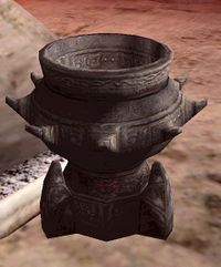 Diese großen, sechseckigen Altäre stehen oftmals im Zentrum eines Schreines des Sechsten Hauses. Auf dem Podest ist eine größere Aschestatue aufgestellt, welche entweder für die Gottperson Dagoth Ur oder aber als dessen personifizierte göttliche Natur dargestellt wird. Die Aschestatue ist ebenfalls im charakteristischen Schwarz und Rot gehalten und die Augen werden durch Rubine dargestellt.