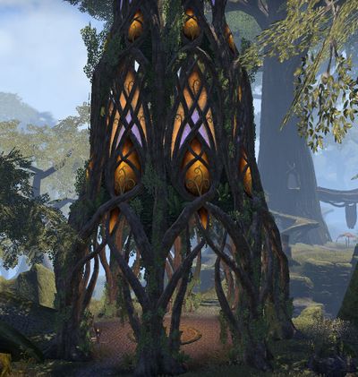 Die Baumarchitektur Silvenars ist wie auch Eldenwurz typisch für die Bosmer. Statt Bodensiedlungen werden Behausungen zwischen den Ästen und in den großen Grahteichen gebaut. Plattformen und verflochtete Äste dienen dazu, sich innerhalb der Baumkronen zu bewegen. Behausungen am Boden existieren zwar auch, werden aber zumeist von anderen Völkern bewohnt.[17]