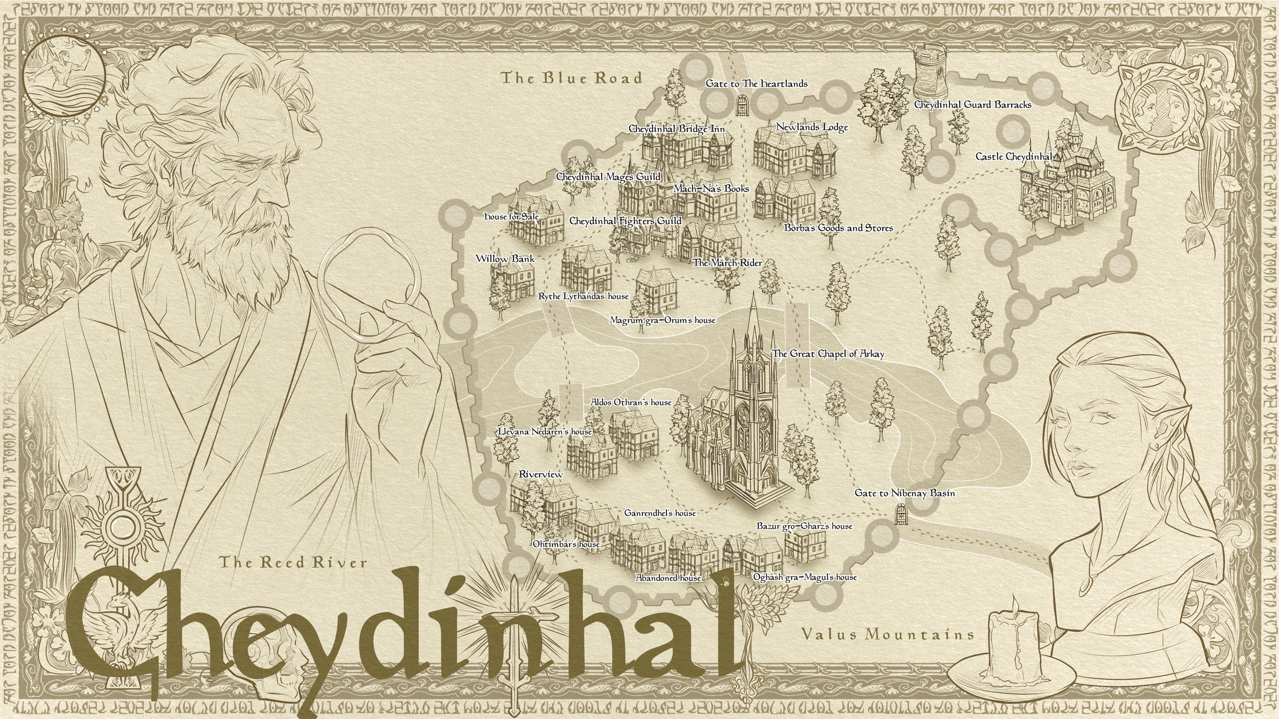 Eine gezeichnete Karte von Cheydinhal. Die Karte wurde von Bethesda anlässlich des Releases von Oblivion Remastered veröffentlicht. Quelle: https://x.com/elderscrolls/status/1971239272025030947?s=12