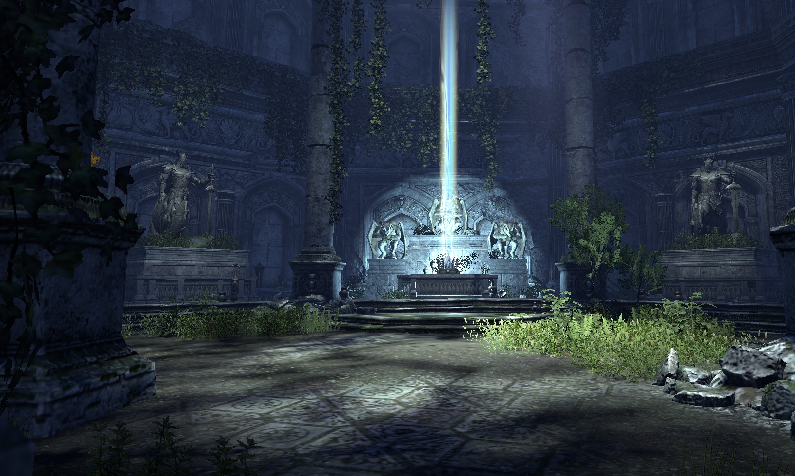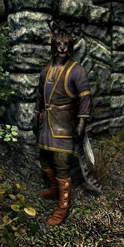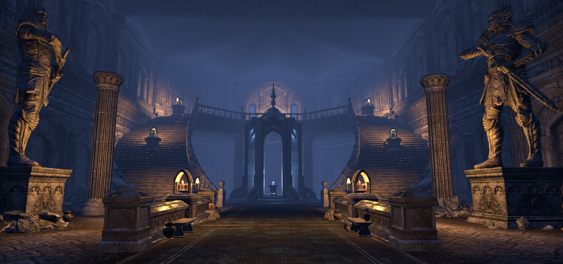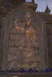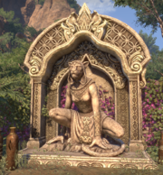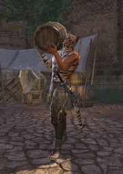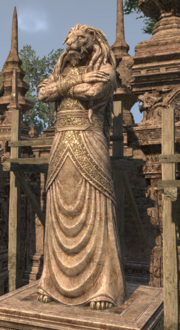Statue eines Cathay-raht-Kriegers in Elder Scrolls Online. Der Fellstamm ist dadurch klar, dass es dieses Statue auch als Einrichtungsgegenstand im Spiel gibt und somit ihr Name zu sehen ist.