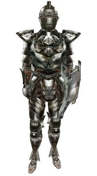 Unter dem Brustpanzer aus Stahl ist ein Kettenhemd, um für weitere Sicherheit zu sorgen. Die Beinschienen sind aus Stahl geschmiedete, der Form des Oberschenkels angepasste Platten, die durch Lederriemen an der Rückseite verbunden sind. Die Stiefel sind Stahl-Zylinder, die mit einem Fuß aus Stahl verbunden sind. Der Helm besitzt nur einen kleinen Sichtausschnitt.