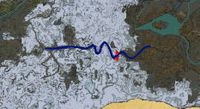 Der Grenzverlauf zwischen den Jarltümern ist durch zwei hohe Monumente an der Straße markiert. Östlich davon liegen die Alchemistenhütte und die Honigstrandhöhle, im Westen Haemars Schande, ein Lager der Sturmmäntel und der Zugang zum Waisenfelsen.