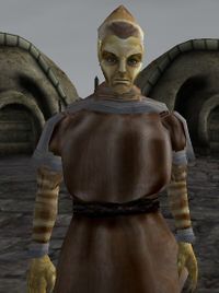 Trotz der Misere in der er sich befand, spendete der Almosenempfänger im Jahr 427 der Dritten Ära dem Nerevarinen Geld für die Buckfalter-Legion und deren Festung. Der Nerevarine war von Iulus Truptor im Auftrag des Kaiserlichen Kultes unterwegs, um Almosen aufzutreiben.
