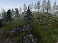 - Der Hirstaang-Wald bezeichnet das größte Gebiet Solstheims und liegt im Südwesten der Insel. Im Osten ist es begrenzt vom Fluss Iggnir und im Norden grenzt es an die Isinfier-Ebene. Die Gegend ist geprägt von sanften Hügeln, hohen Tannen und mittelgroßen Felsformationen. Klimatisch ist diese Region am wärmsten, heftige Schneestürme sind seltener, Schnee liegt hier nur teilweiese. Daher wird sie von den kaiserlichen Siedlern bevorzugt. Im Südwesten befindet sich ein reiches Ebenerzvorkommen, welches von der Ost-Kaiserlichen Händlergilde beansprucht und durch die Rabenfelskolonie gefördert werden soll. Im Süden hat die Kaiserliche Legion die Eisfalter-Festung errichtet, die vor allem mit strafversetzten Soldaten besetzt ist. Im Norden liegt der Brodir-Hain.