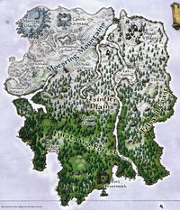 - Die Felsaad-Küste ist die letzte Region, die einen länglichen Korridor im Nordosten der Insel bildet. Ihre natürlichen Grenzen bilden der Fluss Isild, der Fjalding-See und der Flus Iggnir. Im Süden grenzt es an den Hirstaang-Wald. Das Gebiet ist fast vollständig verschneit, dünn bewaldet und wird von großen Felsformationen gekennzeichnet. In dieser unwirtlichen Gegend liegt das große Skaal-Dorf, sowie das Methaus Thirsk.