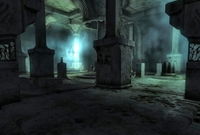 Nach Passieren des Geheimganges findet man sich in einem größeren Raum mit quadratischem Grundriss wieder. In der Mitte wurde von den Ayleiden ein Rundaltar aufgestellt. Von hier aus hat man zwei Möglichkeiten die Anlage weiter zu erforschen. Der Blick fällt zunächst auf den nördlichen Ausgang. Durch Verwendung eines Dietrichs lässt sich die verschlossene Tür leicht öffnen. Aber Vorsicht! Die nachfolgenden Teile der Ruine werden von untoten Kreaturen wie Skelette und Zombies bevölkert.