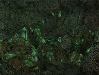 Das auf Vvardenfell bekannte Rohglas ist vermutlich das Ergebnis einer Verschmelzung von Malachit und Mondstein, die unter der Hitze des Vulkans von Vvardenfell zustande kam.[4]