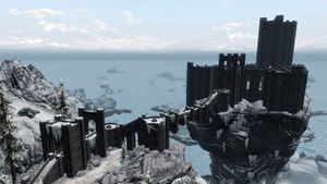 Winterfeste[1] ist die nordöstlichste Stadt Himmelsrands. In frühen Jahrhunderten war die Stadt ein bedeutendes Zentrum und war die Heimat von Großkönig Borgas. In der Neuzeit hat Winterfeste viel von seinem alten Glanz verloren, nicht zuletzt durch den Großen Zusammenbruch in 4Ä 122, bei dem ein Großteil der Stadt ins Meer stürzte.