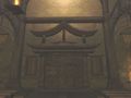Das massive Holztor des Tempels wird von zwei hohen Türmen eingefasst, von deren Spitze aus man weit das den Tempel umgebende Gebiet überblicken und somit potentielle Bedrohungen schnell erkennen kann.[13] Hat man das Tor durchschritten führt eine steinerne Treppe zu einer kleinen Plattform in einer Art Innenhof in Halbkreisform, welcher von der massiven Mauer des Wolkenherrschers gebildet wird. Ob und wenn was für eine Funktion diese Konsruktion besitzt ist nicht bekannt, es könnte sich dabei jedoch um eine für die Verteidigung des Tempels bedeutende Anlage sein.[14]