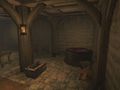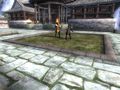 Das Zentrum des Raumes bildet das Waffen- und Rüstungslager des Tempels, bestehend aus zwei Tischen, zwei Regalen, zwei Waffenhaltern und einer Waffentruhe, auf beziehungweise in welchen sowohl einige Akaviri-Katana und Akaviri-Dai-Katana sowie Teile der Klingenrüstung, aber auch ein paar Stahlbögen gelagert werden.
