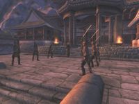 Der mittlere Teil des Vorplatzes fungiert einerseits als eine Art Aufmarschplatz der Klingen, welche im Tempel stationiert sind. So standen alle im Tempel stationierten Klingen bei der Ankunft von Martin Septim im Jahr 3Ä 433 vor dem Hauptgebäude Spalier, um dem designierten Kaiser die Ehre zu erweisen.[15]