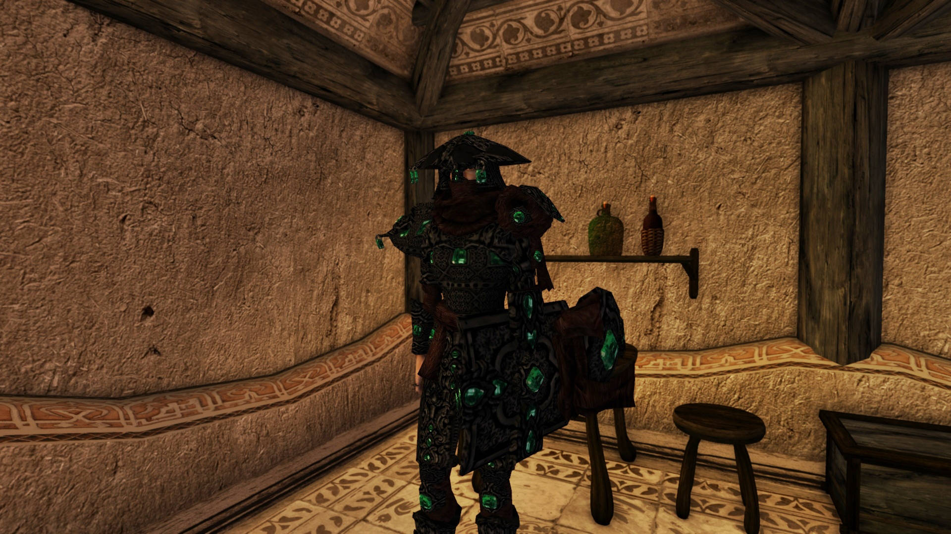 Die Rüstung ist etwas besser als eine Ork-Rüstung, aber teuer und die Verzauberungskapazität ist größer als die daedrischen Rüstungen. Orvas Dren trägt jetzt die Smaragd-Rüstung ohne Helm. Einige Händler und Schmiede verkaufen Rüstungsteile und Waffen. Man kann die Rüstungen und Waffen auch an verschiedenen Orten finden.