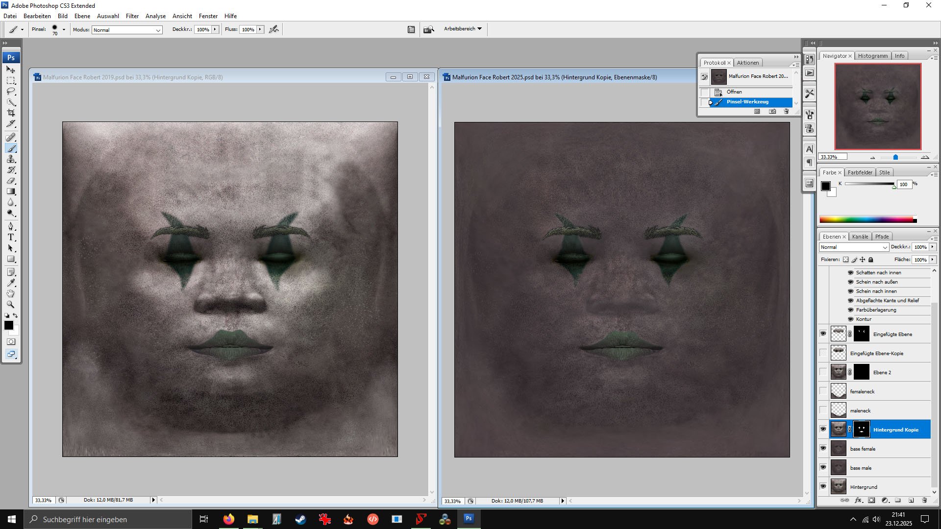 Vergleich der Gesichtstextur der Druiden-Variante der Rasse aus den Jahren 2019 (links) und 2025 (rechts).