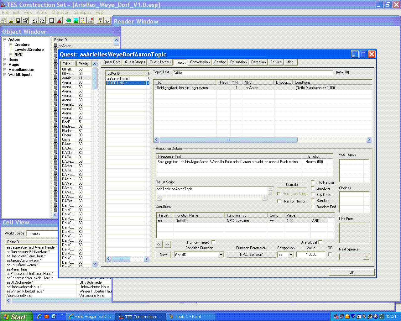 Da ich den Platz brauchte, habe ich ein Oblivion Tor gelöscht ( Verschieben geht ja nicht so einfach ). Das habe ich auch schon vorher einmal gemacht, und da hat alles wunderbar geklappt, bis auf die Tatsache, dass die Geräuschkulisse blieb.