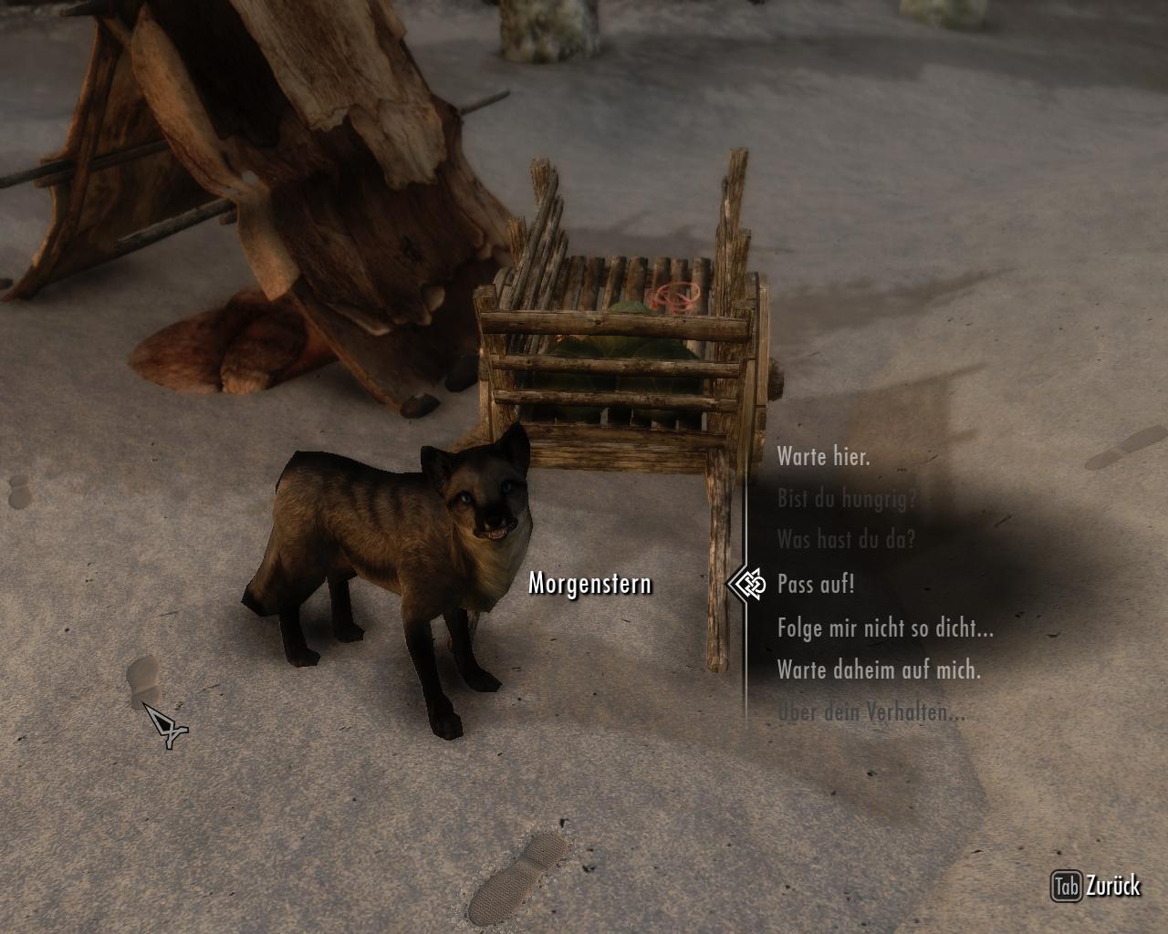 In einem kleinen Lager findet man eine Khajiit, die einem zwei Tiere verkauft. Einen Fuchs und einen Hund. Man kann sich für ein Tier entscheiden oder beide kaufen. Damit die Kampfkünste der Tiere verstärkt wird, kann man gegen Gold die Tiere trainieren lassen. Ausserdem verkauft sie einem den Zauber "Hundepfeife", mit dem man die Tiere rufen kann, sollten sie verloren gegangen sein oder daheim auf einen warten.