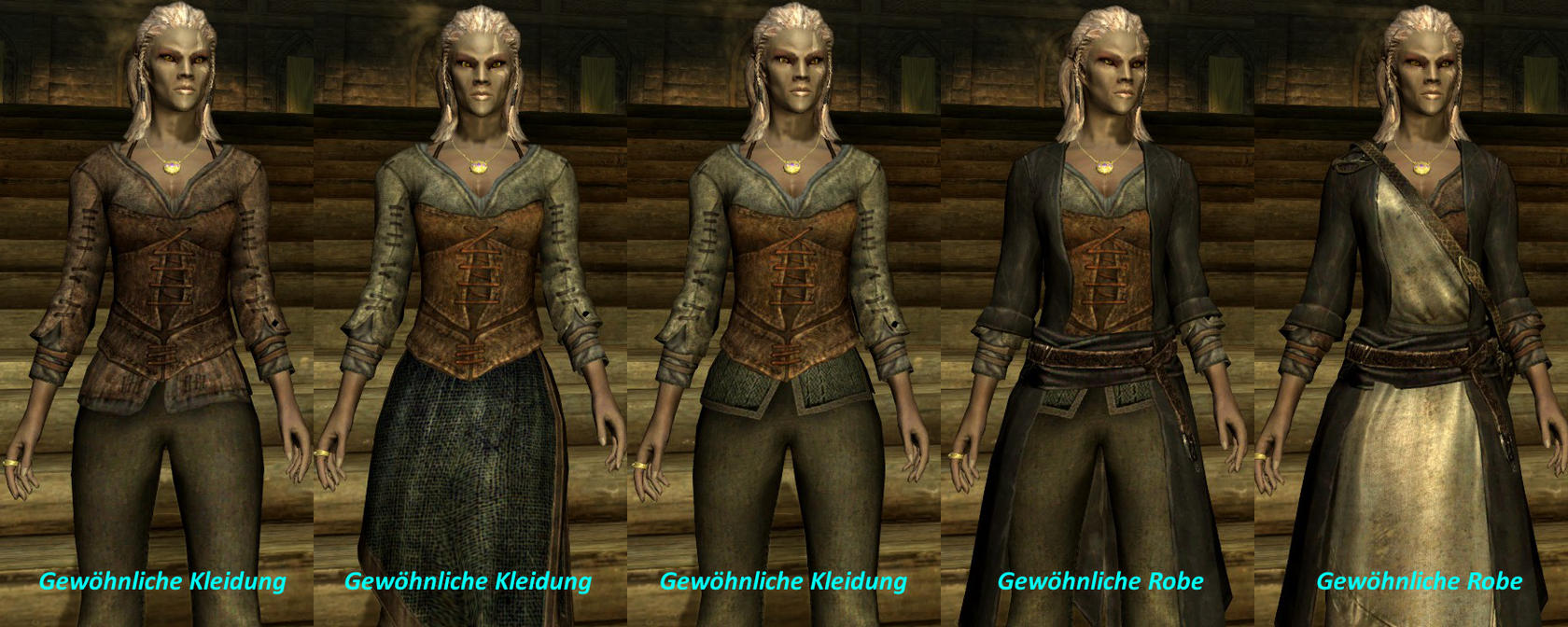 Diese Mod fügt viele verschiedene gewöhnliche herstellbare Kleidungen, Roben und Rüstungen ein. Ich benutze "gewöhnlich" im Sinne, wie es in Morrowind benutzt wurde: niedrige Werte, günstig. Sie werden alle außerdem in die Händler-/Loot-Leveled-List eingefügt.