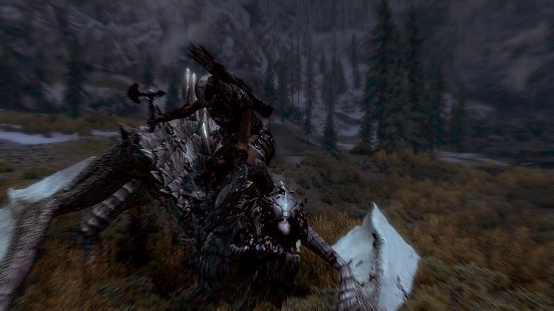 Doch leider war es noch nicht vorbei. Direkt vor uns hielt eine Bärin ihr Verdauungsschläfchen, was wir nicht unbedingt stören sollten. Hadvar war zwar dafür, sich einfach an ihr vorbei zu schleichen, aber das Risiko war mir zu groß. Am Ende würde sie doch noch erwachen, und dann hätten wir sie im Rücken. Nein, stattdessen griff ich erneut nach meinem Bogen und legte einen Pfeil auf. So weh es mir auch tat, aber ich wollte heute einfach kein Risiko mehr eingehen. Ich schoss.