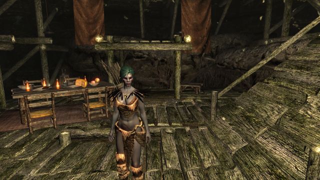 Hadvar stellte mich seinem Onkel Alvor und dessen Familie vor, die uns dann freundlich bei sich willkommen hießen. Während Hadvar seinem Oheim von den Ereignissen in Helgen berichtete, brachte uns seine Frau Brot, Käse und ein paar Flaschen Met. Normalerweise hielt ich nichts von dem Zeug, aber zur Feier des Tages wollte ich mal nicht so sein. Wer eine Enthauptung und einen riesigen Drachen überlebt, kommt auch mit einem Kater zurecht.