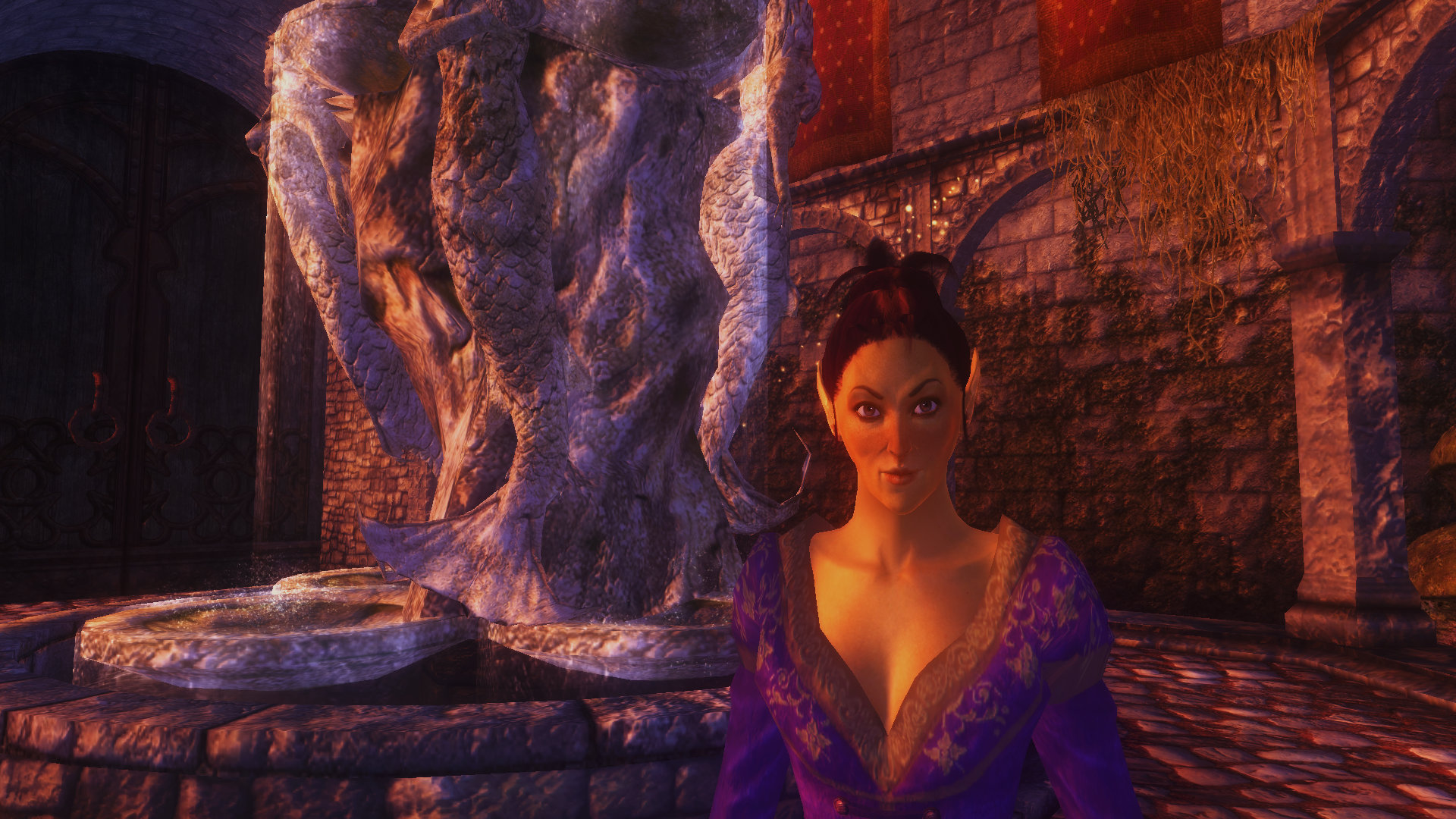 sprecht mit der Hochelfe Selen, die ihr vor der Statue (Springbrunnen) in Bliss anfindet.