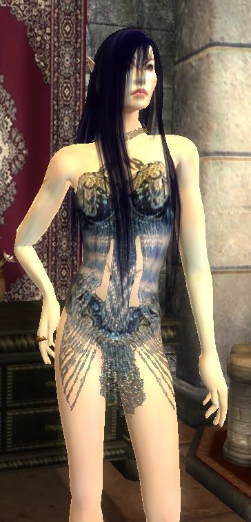 Als ich meine CCplus zusammengefriemelt habe hatte ich keine Lust dazu, meinen Char erst noch durch die Anfangsdungeons zu jagen, um an meine Lieblingsklamotten ran zu kommen. Deshalb habe ich mir auf die Schnelle ein paar von Growlfs Stücken in Briseis (Danke Süße *lächel*) Truhe gepackt.