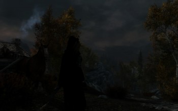 Auf den Weg nach Morthal, wo schon das nächste Opfer wartete, machte ich noch einen Umweg um einen weiteres Teil für die verblichene Forscherin einzusammeln. So, ein Teil noch, und dann bin ich ja gespannt, ob sich das alles gelohnt hat. Zwei Tage später, reiste ich dann mit allen vier Teilen Richtung Rifton um mich hoffendlich ein letztes Mal mit ihr zu treffen. Auf dem Weg, traf ich noch 2 arme Bauern, die mir jetzt ganz gut schmecken könnten. Hat mir gestern einer was ins Blut getan? Ich brachte es irgendwie nicht übers Herz dieses arme Pärchen, jetzt zu beissen. Und nicht nur dass, ich gab ihnen zu allem Überfluss auch noch etwas Gold. Ich kam auf meinem weiteren Weg an Hillgrunds Grab vorbei, wo ich vor langer Zeit mal jemanden geholfen hatte, seine Tante zu finden. Ein Blick zum Himmel sagte mir, dass ich hier wohl die Nacht verbringen sollte. Ich war erstaunt, als auch dieser Nord wieder hier war, er wolle nur sehen, ob in der Gruft seiner Ahnen noch alles in Ordnung war.