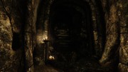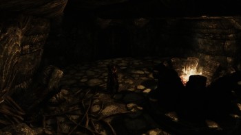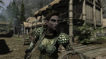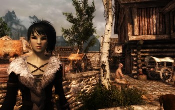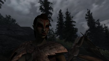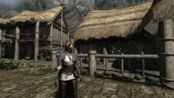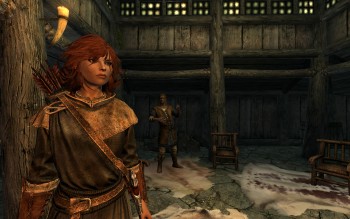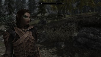 Auf ihrer Reise schnappte sie immer wieder Gerüchte auf, dass etwas in Himmelsrand nicht stimmen würde. Sie hörte von einem Bürgerkrieg und beschloß sehr vorsichtig zu sein. Kaum hatte sie die Grenze nach Himmelsrand passiert, beschloß sie den größten Teil ihrer Ausrüstung zu verstecken und nur mit einen Dolch bewaffnet und in schäbiger Kleidung gewandet ersteinmal die Gegend zu erkunden. Die Überlegung, dass Banditen sicher keine Bettlerin überfallen würde veranlassten sie zu dieser Kleiderwahl.