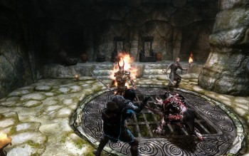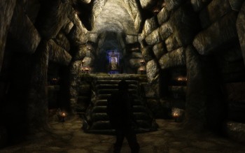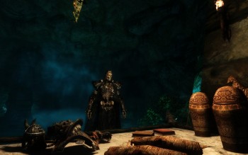 Ja, so fühle ich mich wesendlich wohler, und schlich vorsichtig weiter. Als ich eine Tür vorsichtig öffnete, sah ich wieder einen Vampir und auch einen mächtigen Draugr. Lieber erstmal einen Dremora beschwören, bevor ich hier reingehe. Fast gelangweilt, schaute ich nur zu, wie mein Begleiter mit mächtigen Hieben die Feinde zerlegte.
