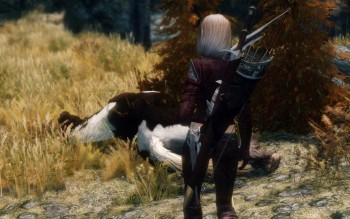 Nachdem sie es geschafft hatte auf die Beine zu kommen fand sie ein Stück die Straße runter das Pferd, ebenfalls tot wie der Khajit.