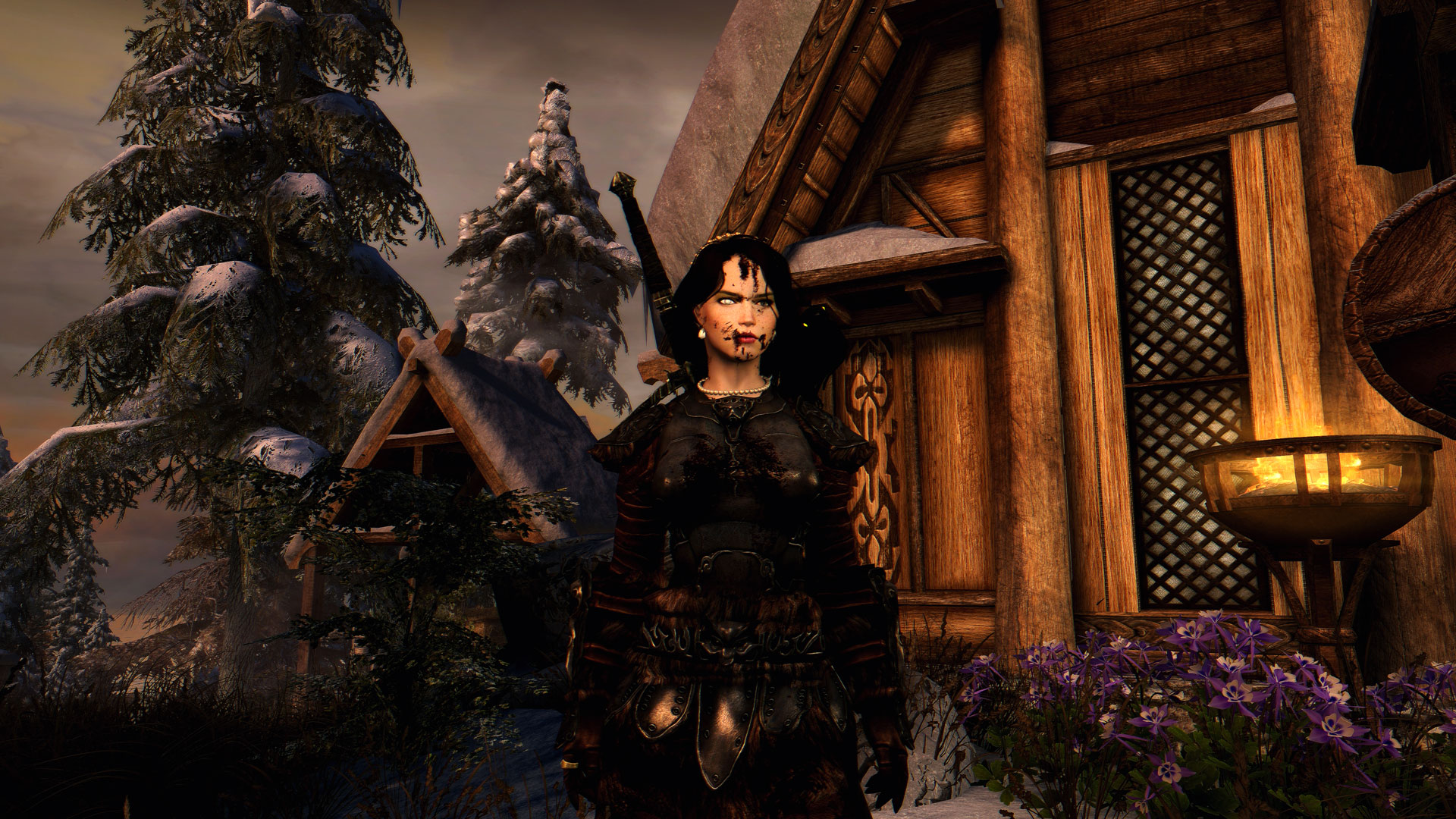 Das neue Lieblings-Outfit von Rhona War-Raven ist das Outfit der Gegner in Falskaar. Ist eigentlich eine Retex der Stormcloak-Uniform, aber eine sehr gute mit dezenten Farben und in hoher Qualität.