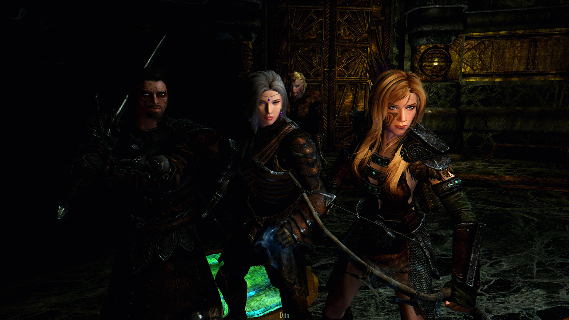 Tempel von Miraak, da habe ich tüchtig an der Beleuchtung rumgerissen, wie auch an der der schwarzen Bücher. Miraak hat eine Geschlechtsumwandlung gekriegt und nennt sich neu Lady, funzt einwandfrei. Wieso ich sowas tue? Keine Ahnung. Weil es eine Mod dafür gab? 🙂