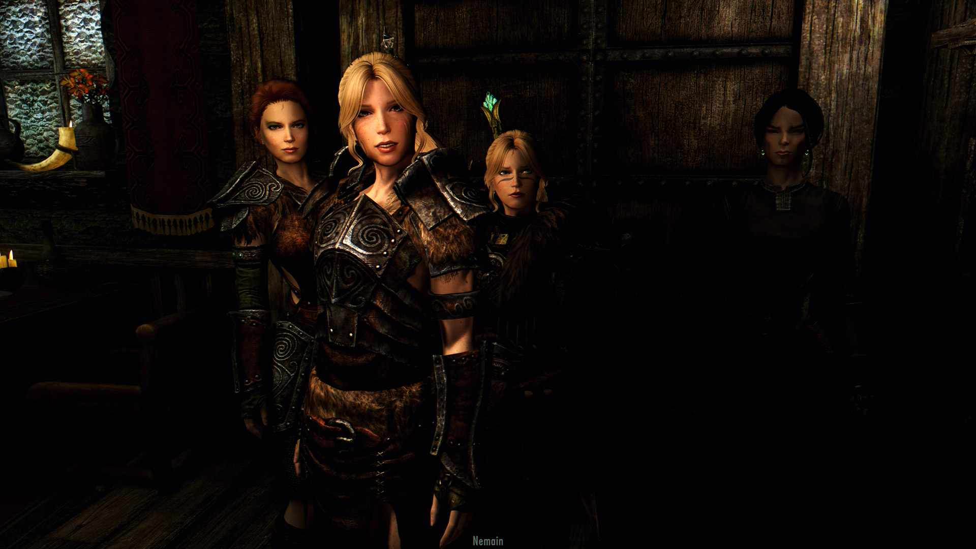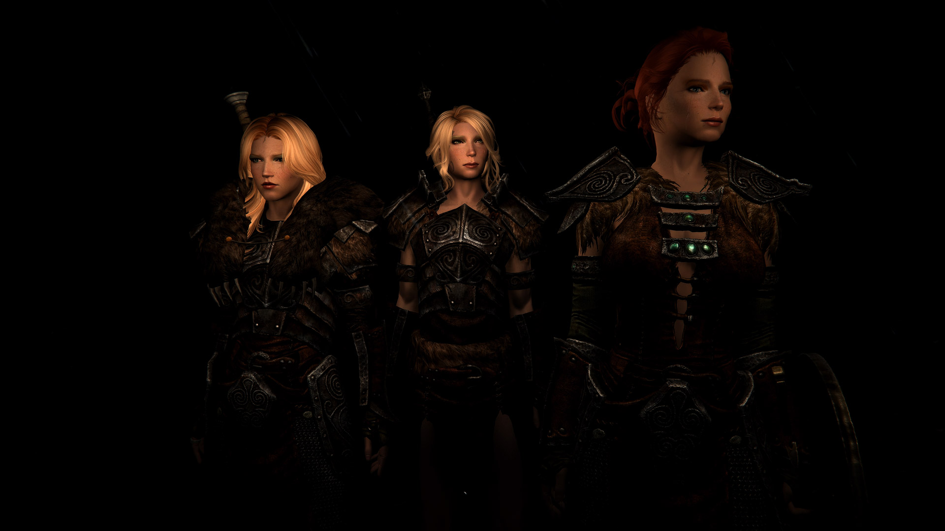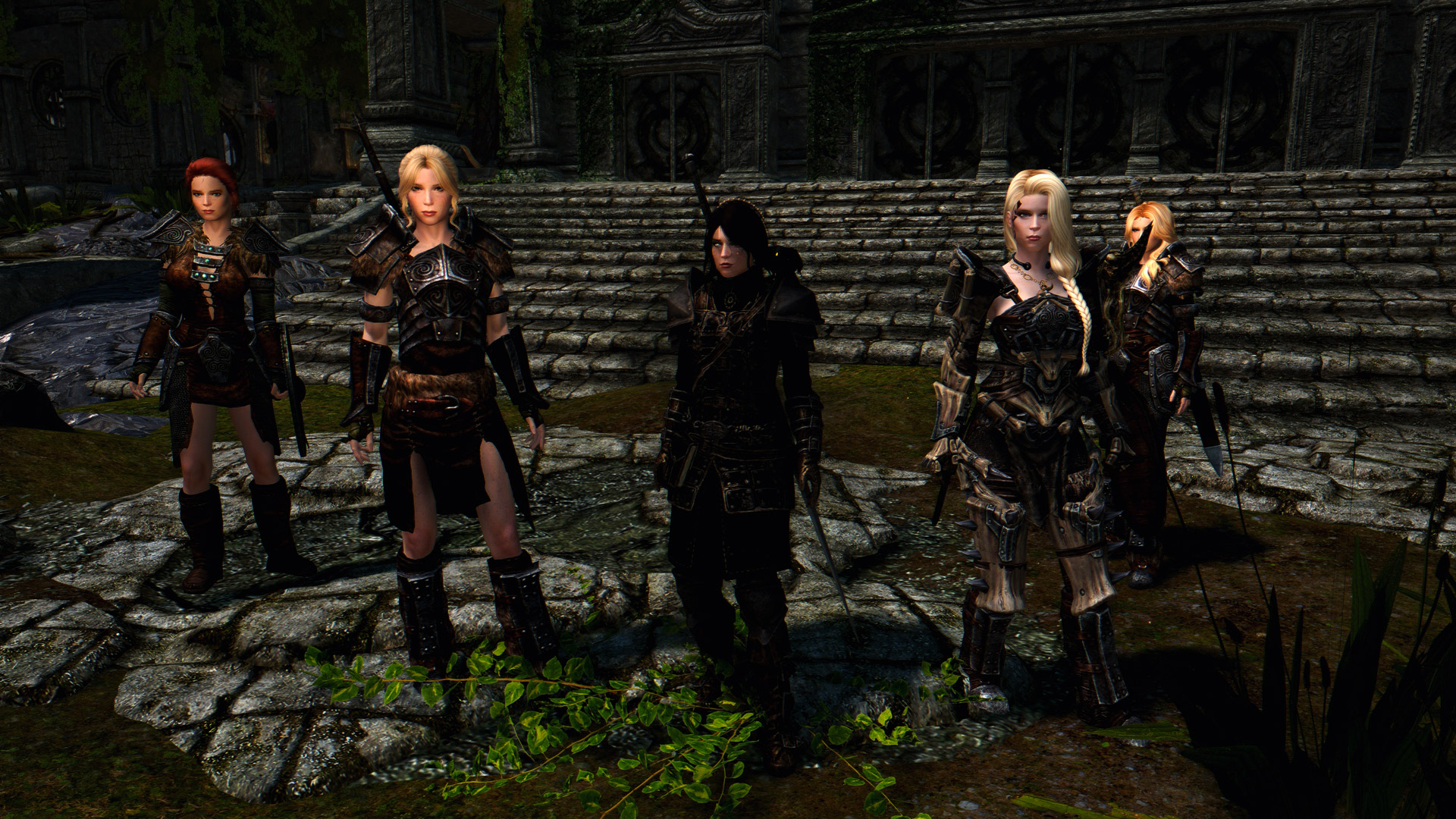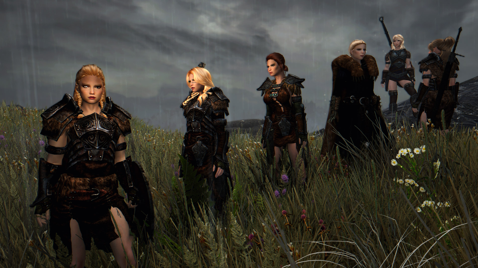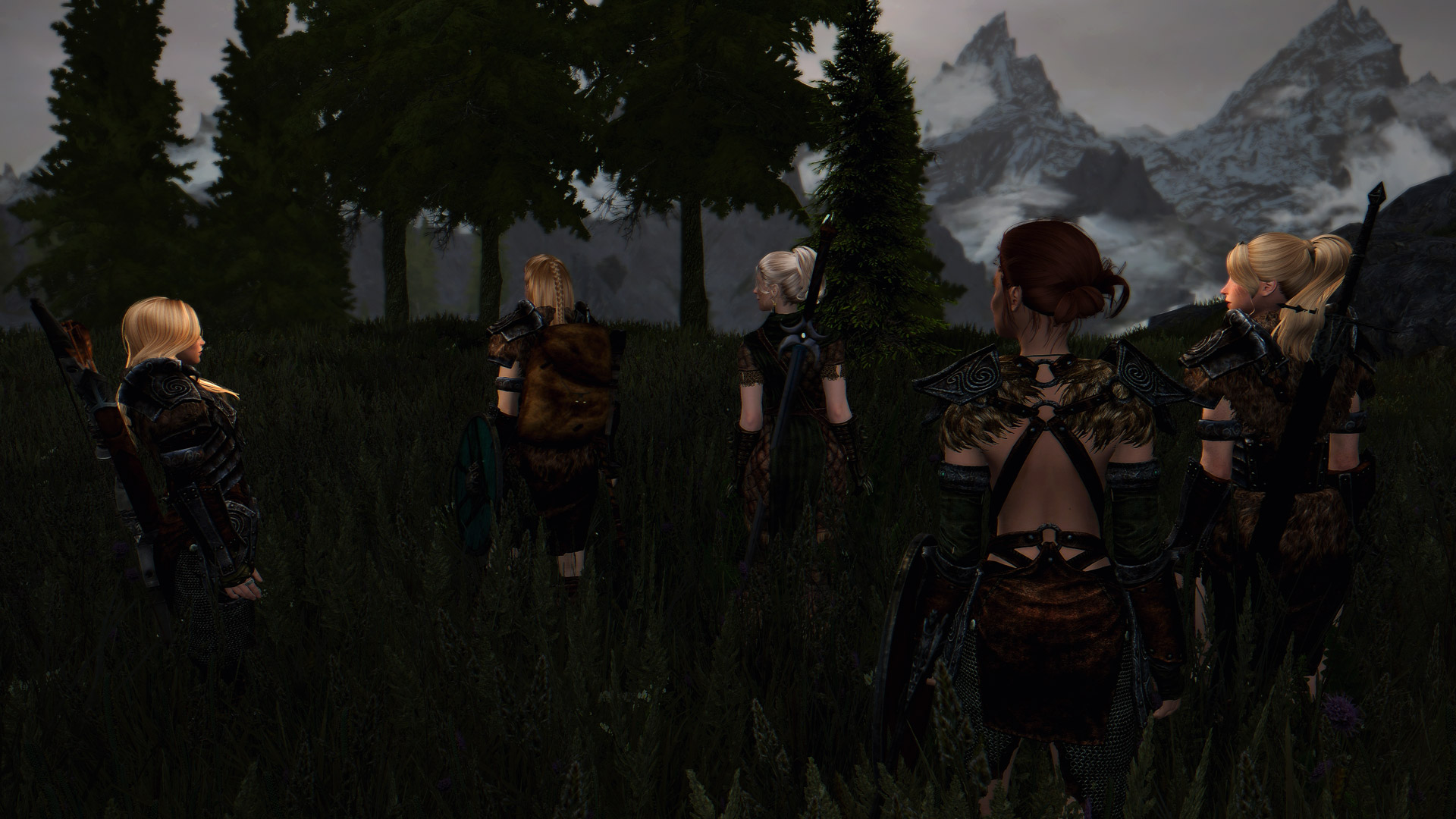 Die rothaarige Tamaria sieht fast zu lieb aus für diese Welt. Brynhildr sieht tatsächlich wie eine Walküre aus, bewaffnet mit einem Dragonslayer-Bogen. Nemain und Mjoll könnten Schwestern sein. Und alle in diesen Variationen von Draugr-Rüstungen, natürlich steht Talvi Hadrada die Drachenrüstung zu.