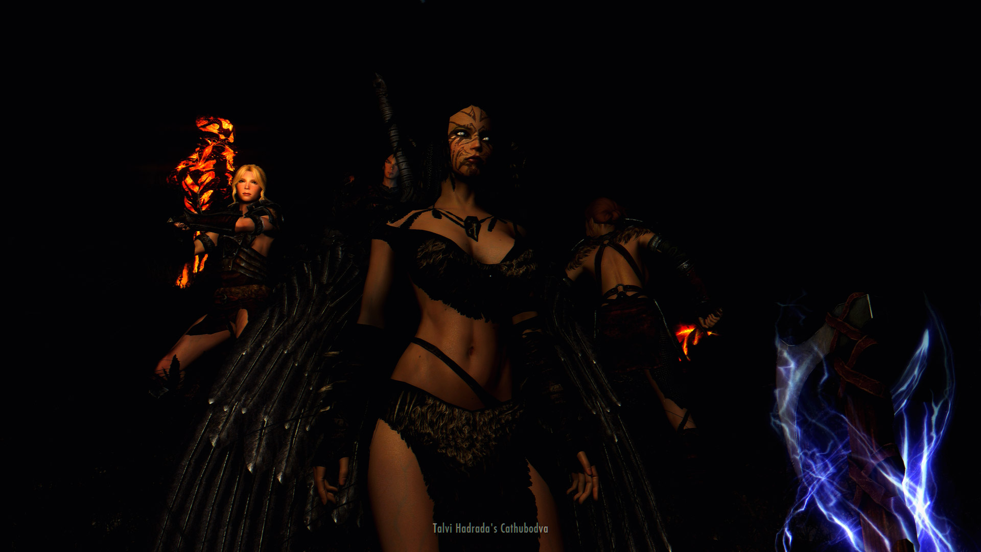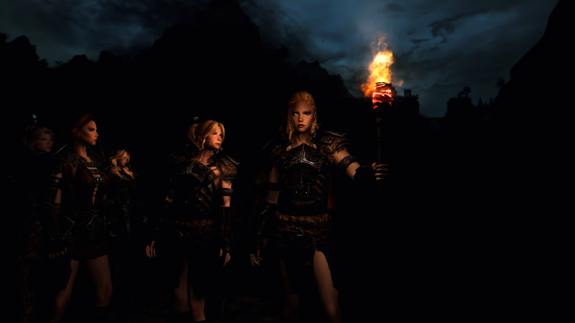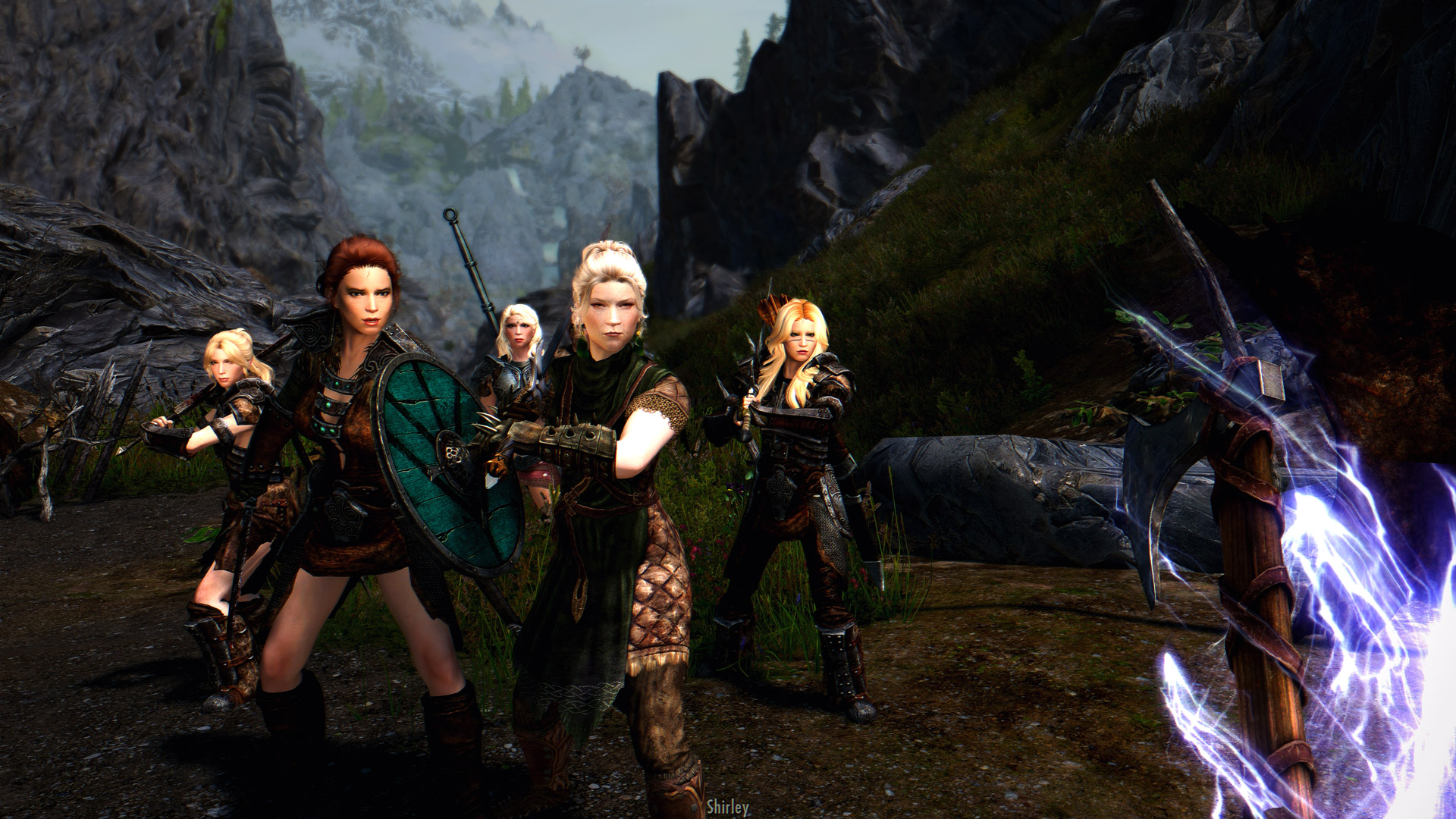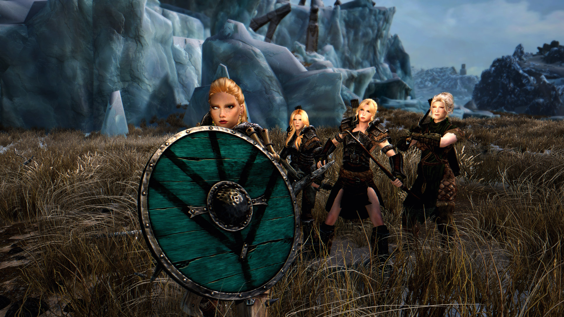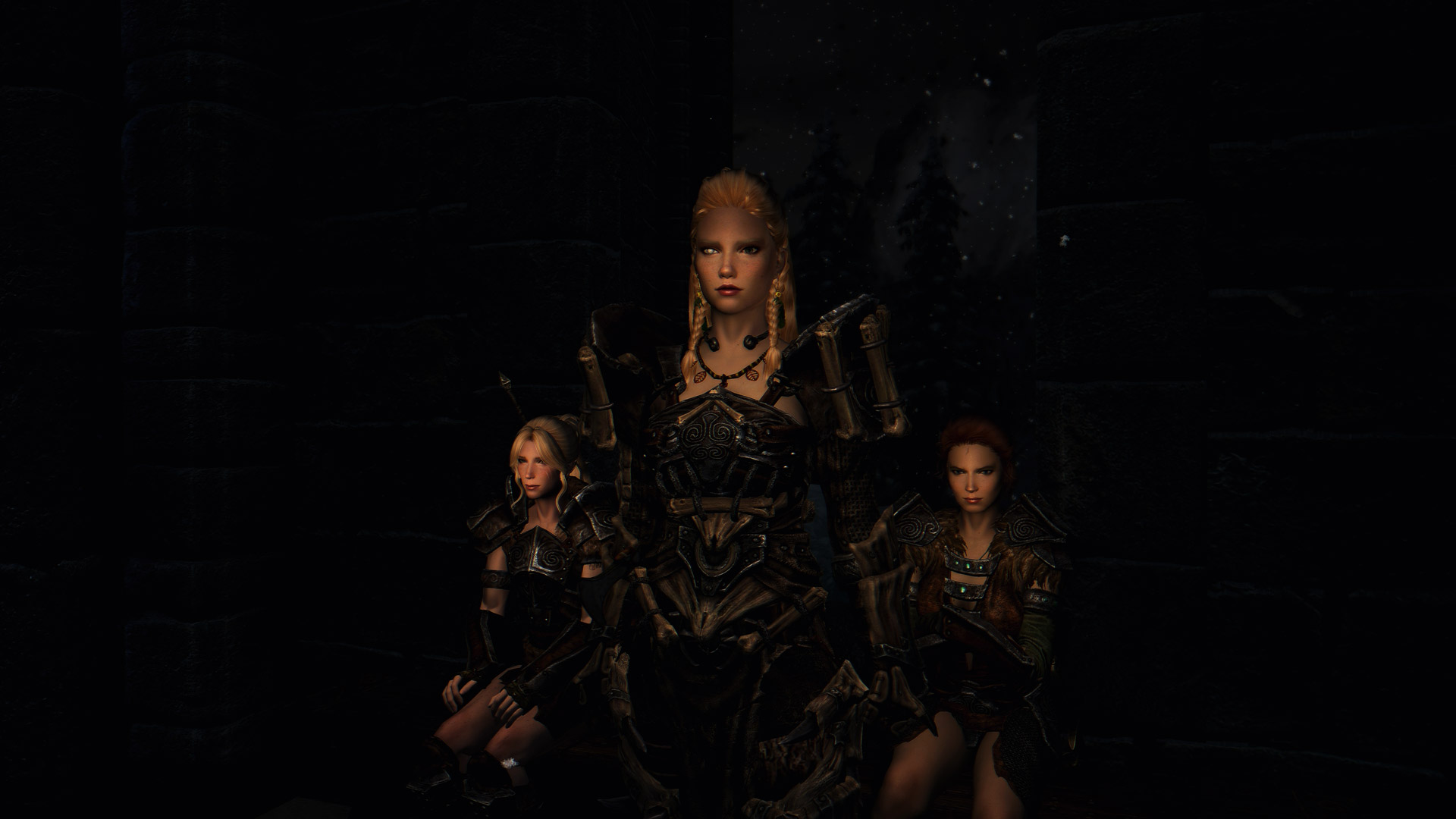 Die rothaarige Tamaria sieht fast zu lieb aus für diese Welt. Brynhildr sieht tatsächlich wie eine Walküre aus, bewaffnet mit einem Dragonslayer-Bogen. Nemain und Mjoll könnten Schwestern sein. Und alle in diesen Variationen von Draugr-Rüstungen, natürlich steht Talvi Hadrada die Drachenrüstung zu.