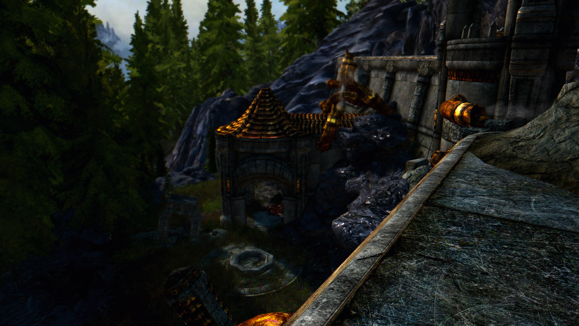 Bei Mzulft habe ich wieder gemerkt, wieso man mit Mods spielen sollte. Als Basis natürlich viel bessere Texturen, dann eine Mod oben drauf, die mehr Deko-Röhren und Maschinen um die Ruinen verteilt, dazu eine, die die Röhren besser macht. Dann ein neues Gebäude, keine Ahnung von welcher Mod mit mehr Loot, dann die Bestandteile für die Leviathan-Axt... Es hat einfach soviel mehr Details im Game.