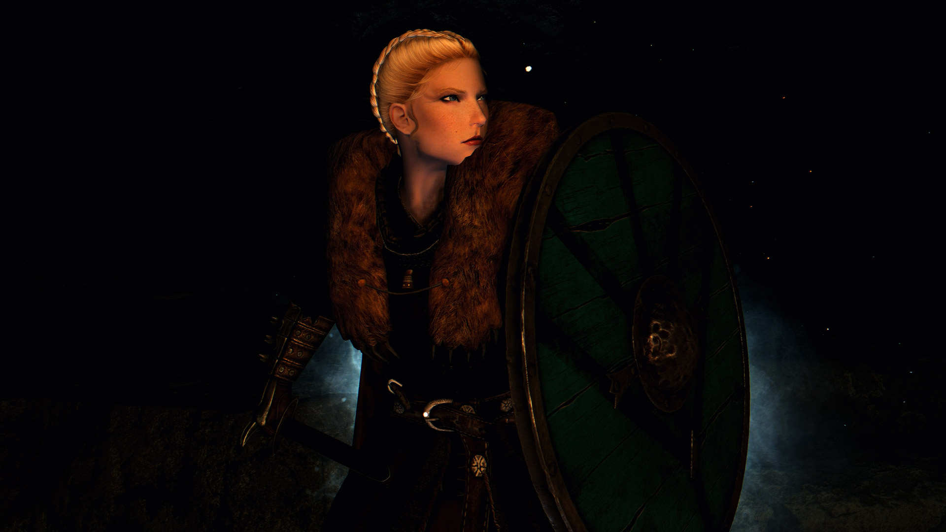 Immerhin sind der Schild und das Schwert Replikas aus Vikings. Habe bisher nichts gefunden, dass näher an ihr Outfit rankommt. Das sit eine von mir umgefärbte Lederrüstung aus "Common Clothes".