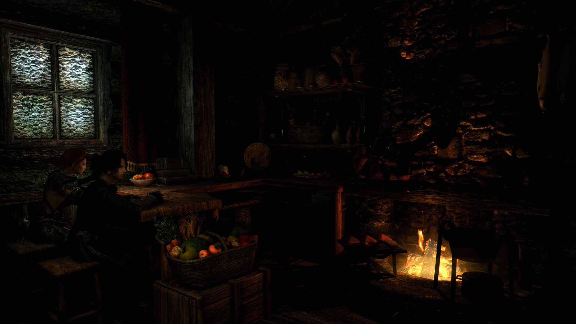 Bin gerade wieder hin und weg von Rifton. Es hatte gerade geregnet und als der Regen weg ging, sah die Atmosphäre wirklich so aus, wie wenn in Real Life der Regen weg geht und die Sonne raus kommt. Satte Farben, hübsche Effekte vom Feuer, Lens-Flares und volumetrisches Licht, knackscharf(meistens), und diese Mauertextur ist einfach der Hammer. Diese Kombination von grün, braun und blau. Warmes Holz, (nicht zu)kalter Stein, sattes Grün, blauer Himel mit weissen Wolken. Ich denke, ich würde entweder in Markarth oder Riften wohnen, wen ich wählen könnte.