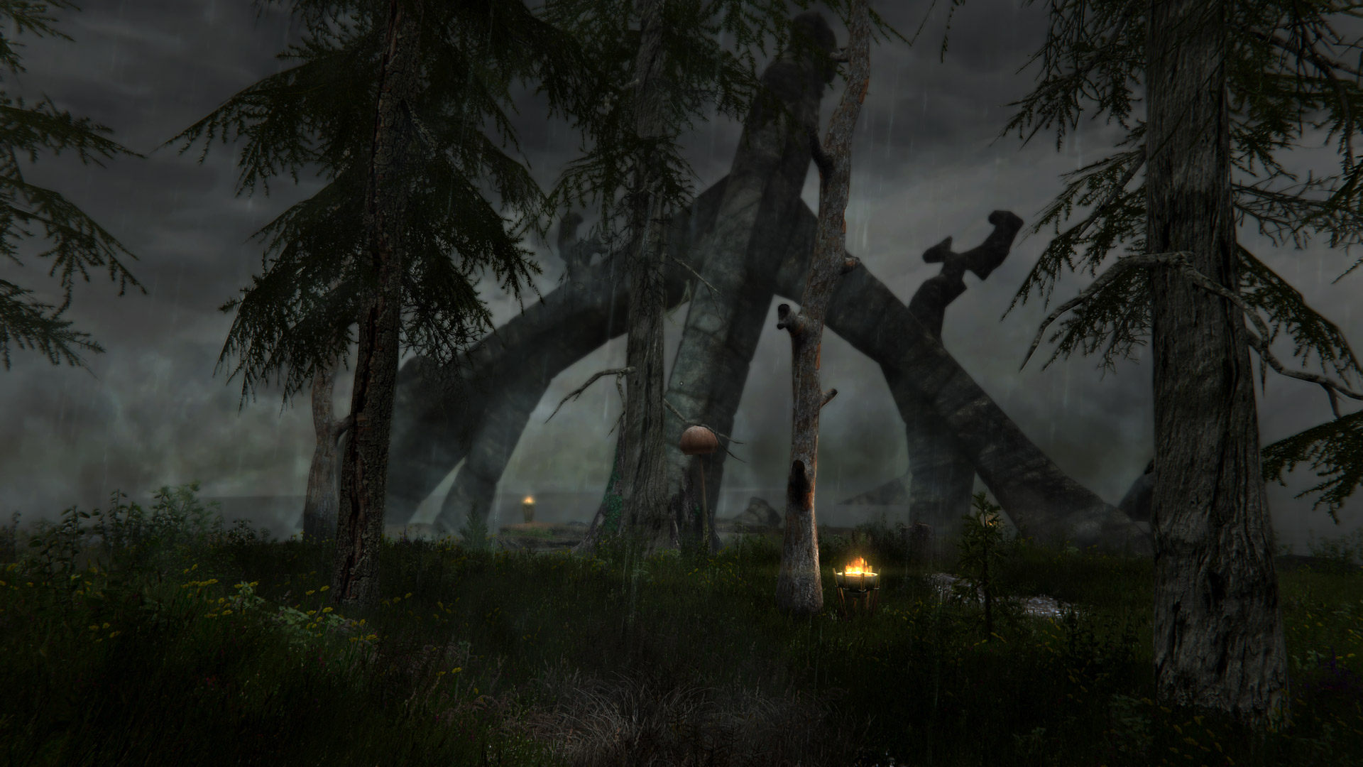 Wyrmstooth sieht halt wirklich wie mein Far Harbor aus mit dem Nebel und den neuen Laternen, aber auch den Geräuschen. Die Screenshots können es nicht recht rüberbringen, was da für eine Atmosphäre herrscht mit Kerzengeflacker, echten Blitzen und wallenden Nebeln. Wobei ich seine Wetter durch meine ersetzt habe, die alle Schikanen drin haben, wie Regen-Refraktion. Und da regnet es recht häufig und ich bin hin und weg wie das aussieht. Ich freue mich regelrecht drauf, weil es der fetteste Regen ist, den ich aus Games kenne. Wobei Fallout 4 einen Vorteil hat und zwar die Regenshader auf Strassen, Objekten und Körpern(wobei die auch nur mit Mods geniessbar sind).
