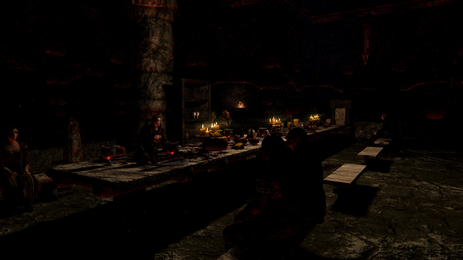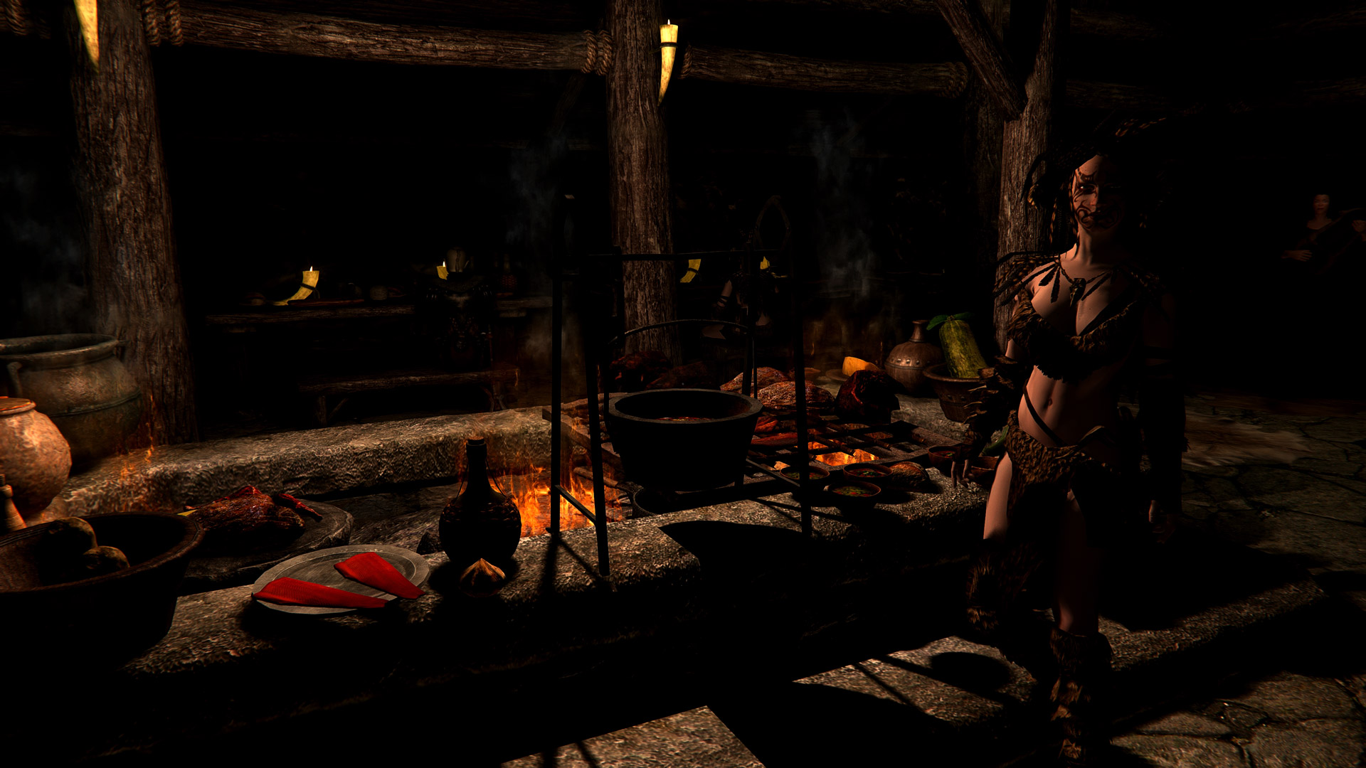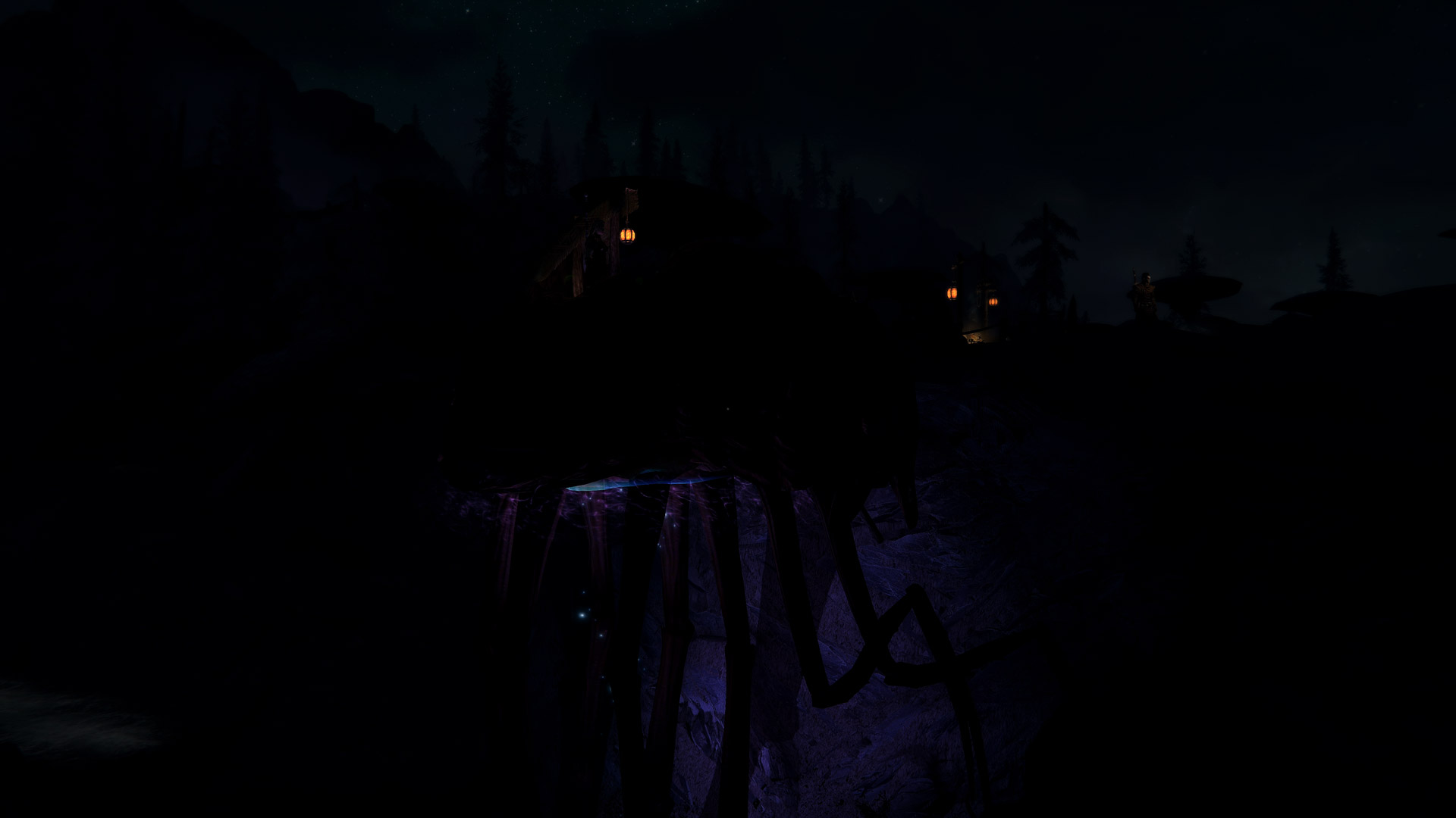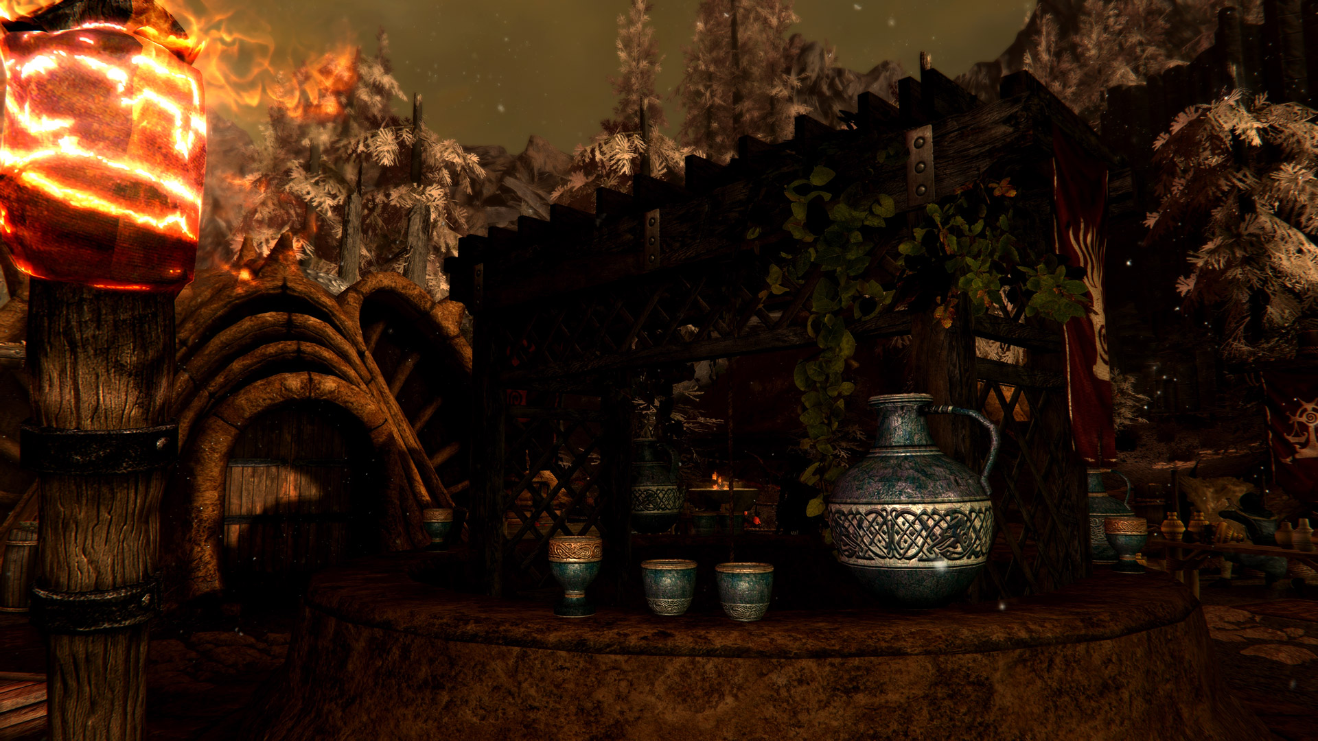 Nach meinem Verständnis verträgt der Ort keinen Palast, sondern mehr einen Berghof mit ein, zwei nicht bemalten Kühen. Eventuell ein paar Gärtchen für Kartoffeln und Bergblumen. Eine Bank zum Sitzen, Metfass darf nicht fehlen und auch ein Jagdbogen der unter dem Vordach griffbereit hängt.