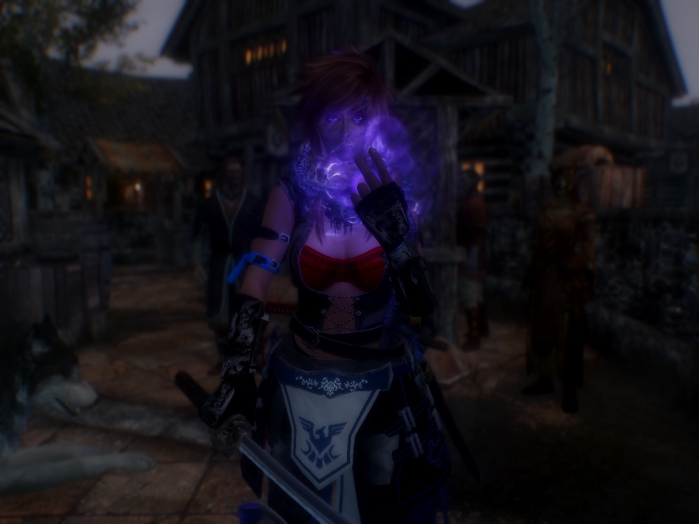 Sie schaut aus wie ein reiches Mädchen aus gutem Hause, dass zusammen mit ihrer Eskorte eigentlich nur ihre Großeltern ausserhalb Himmelrands besuchen wollte, doch dann kam sie in die Fänge der Kaiserlichen. Sie ist aufgrund der Erlebnisse verängstigt und versucht nun auf eigene Faust, nach Hause zurück zu gelangen. Sie wäre eine gute Zauberin.