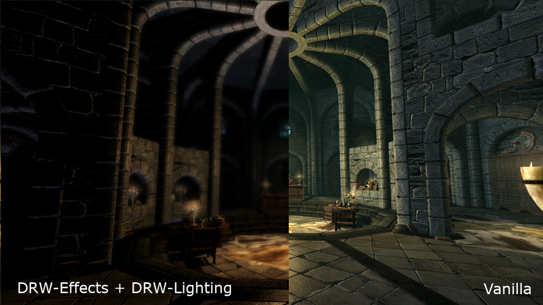 DragonWarrior-Effects fixt das Bild, damit Vanilla erträglich wird aber effektiv kann es keine fehlenden oder total kaputten Beleuchtungen fixen. Man kann schon das Bild dunkel machen und DoF drauf klatschen, damit einigermassen Stimmung aufkommt, aber eigentlich ist es nicht zum Bugfixing gedacht, sondern zur Verbesserung nach eigenem Geschmack.