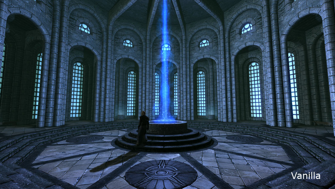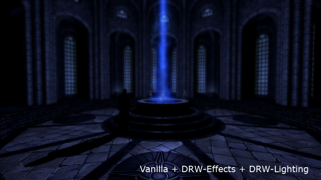 Nur mal als Beispiel die Akademie von Winterfeste, die einfach eine unerträgliche Beleuchtung hat, wie ich vorhin merken musste, um mal echte Vorher-Screenshots zu machen, wie verdorben Vanilla daher kommt. Da wird soviel Atmosphäre verschenkt, es ist einfach nicht zu fassen.