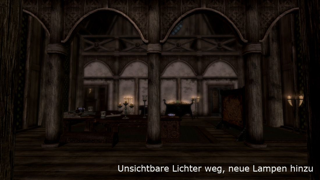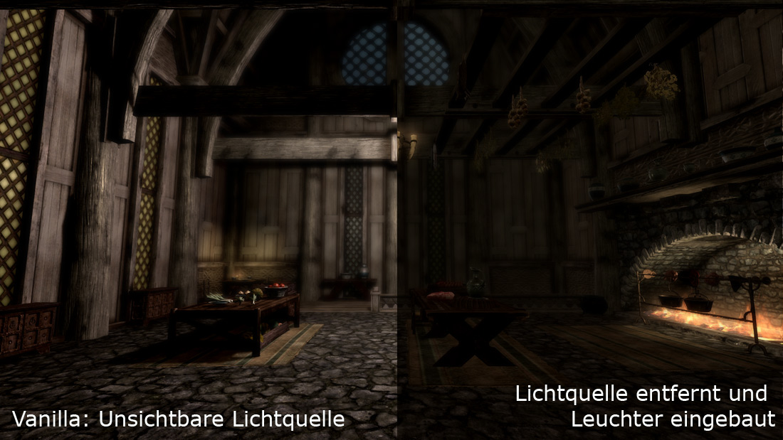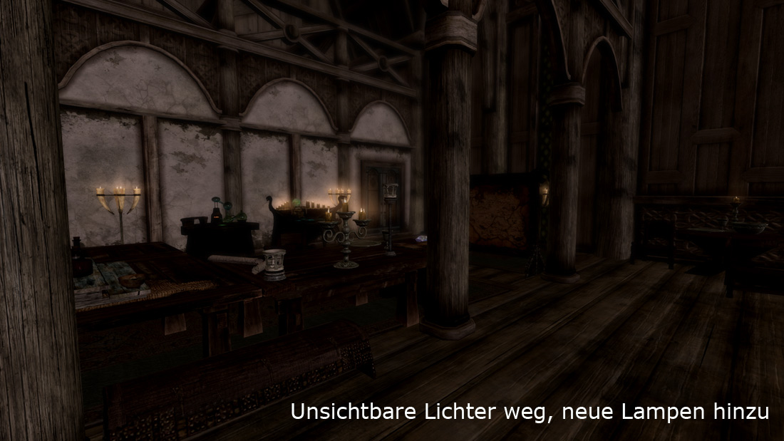 Und Realistic Lighting und andere Mods, die die Beleuchtung von Interiros ändern, gehen natürlich nicht.