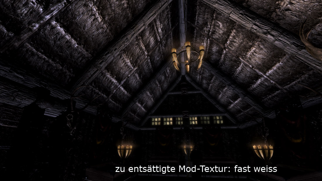 Ich kann nicht jeden Raum besuchen und von Hand einzeln rumschrauben, deshalb haben die alle eigene ImageSpaces und Beleuchtung, die Default für ein Holzhaus, eine Höhle oder Burg sind. Ich zocke aber während dessen und besuche jedes Loch und schraube notfalls von Hand rum, wenn das nicht ausreicht.